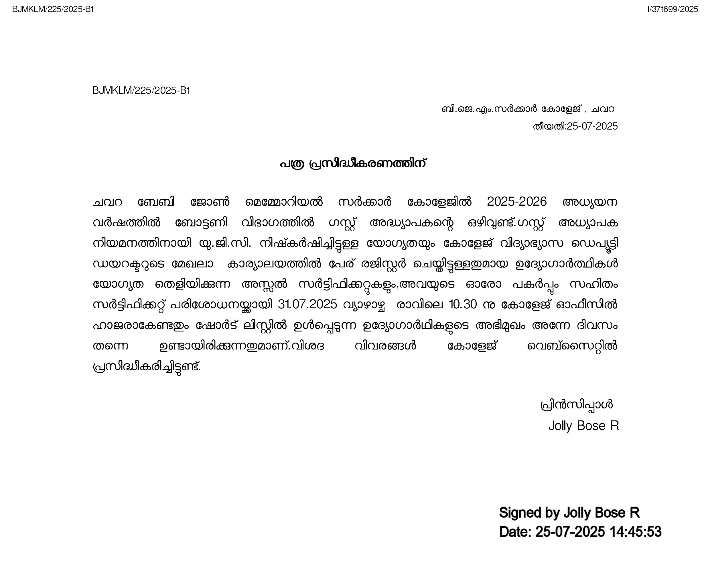 Botany – Guest lecturer Interview Standard Operating Procedure Guest Teacher Appointment – DCE Kerala